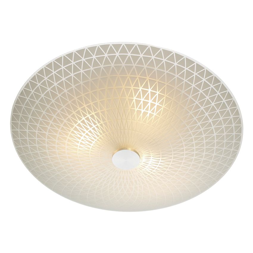 Opal white glass 3 light flush supplied with both satin chrome and antique brass centre finials.