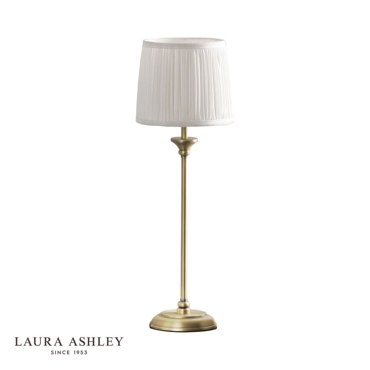 Stylish touch table lamp in an antique brass finish complete with a cream silk pleated shade. Braided brown cable with a touch on/off feature.