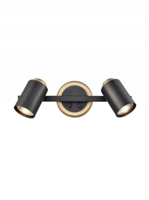 Stylish double spot light bar in a matt black and brushed brass finish. Switched. Double Insulated.